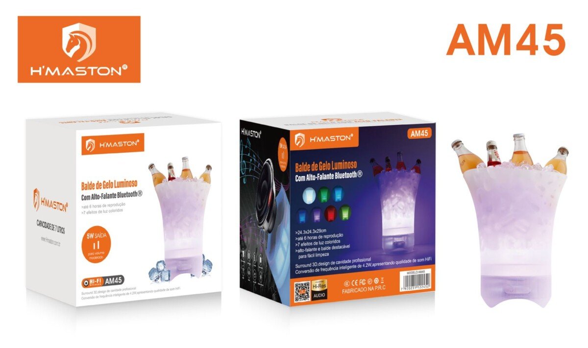 Balde P/ Gelo Rgb Caixa De Som Bluetooth H’maston AM45