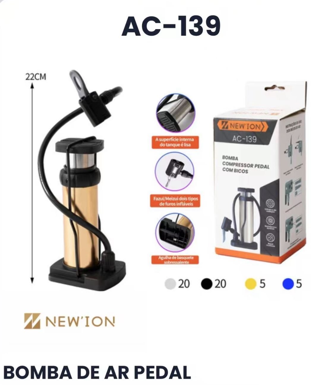Bomba De Ar Pedal Mini Compressor New ion AC-139