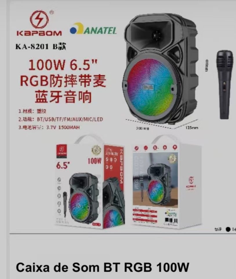 Caixa De Som Bluetooth C/microfone RGB 100W Kapbom KA-8201
