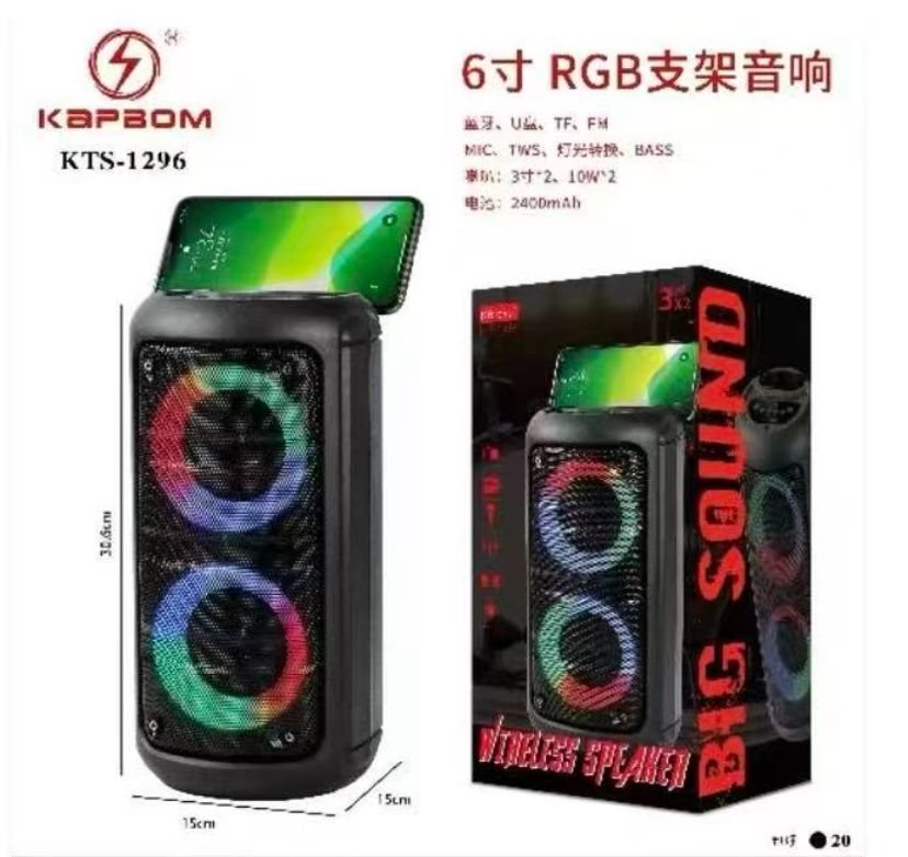 Caixa De Som Bluetooth KTS-1296 RGB 20w