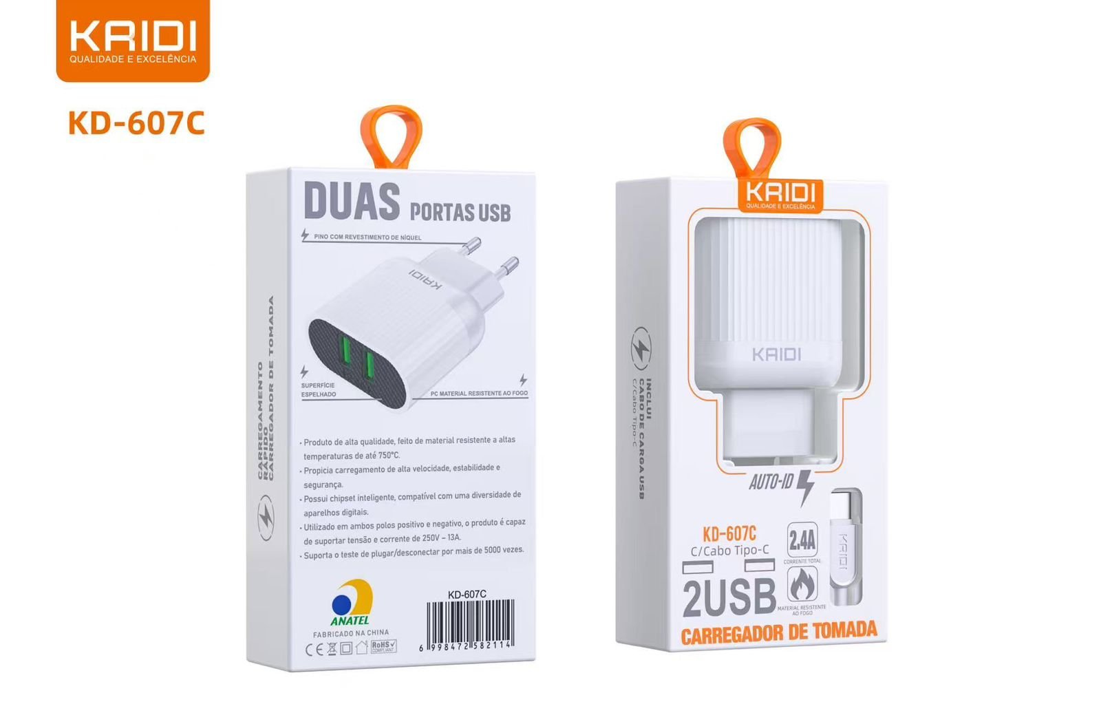 Carregador KAIDI 607C Tipo C 2.4A 2USB
