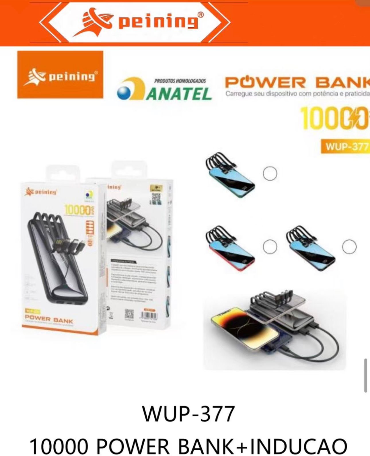 Carregador Portatail 10000mah Inducao C/cabos Peining WUP-377