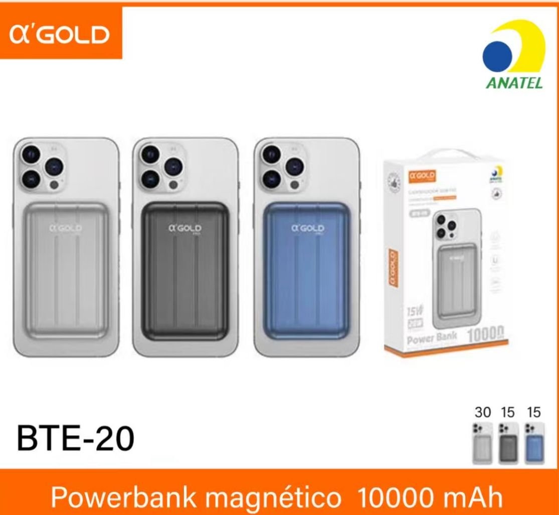 Carregador Portatil 10000mah Inducao 7,5w A’gold BTE-20