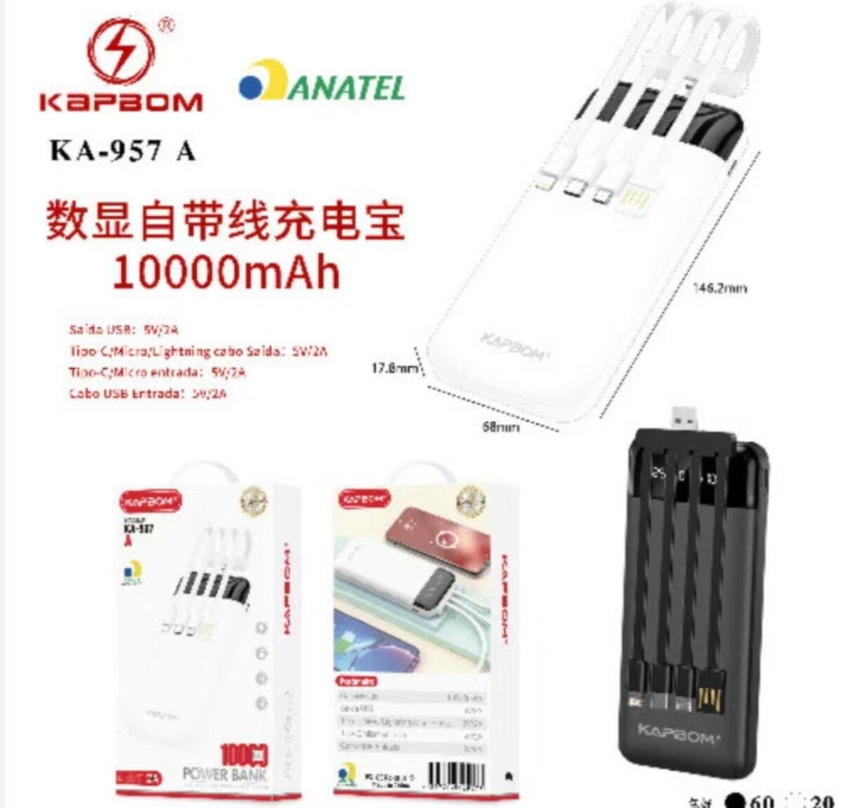 Carregador Portatil 10000mah Kapbom KA-957 A 5V 2A