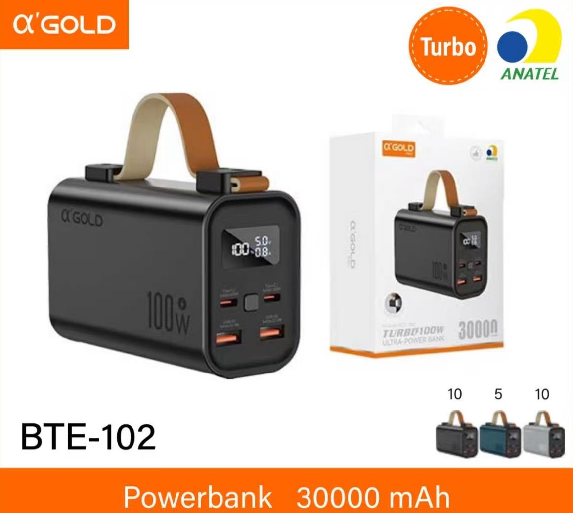 Carregador Portatil A’Gold 30000mah BTE-102 100w C/Lampada led