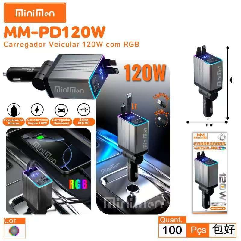 Carregador Veicular 120w com RGB Leon MM-PD120W
