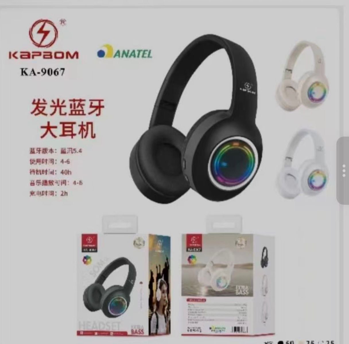 Fone Bluetooth C/LED Kapbom KA-9067
