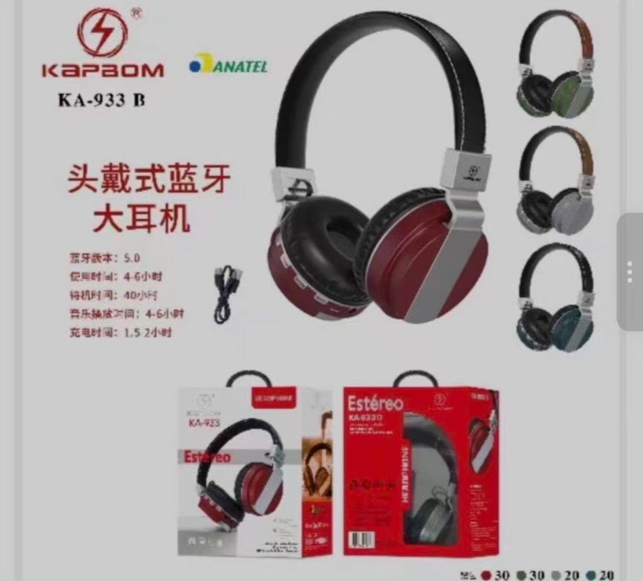 Fone Headphone Estereo Bluetooth Kapbom KA-933 B