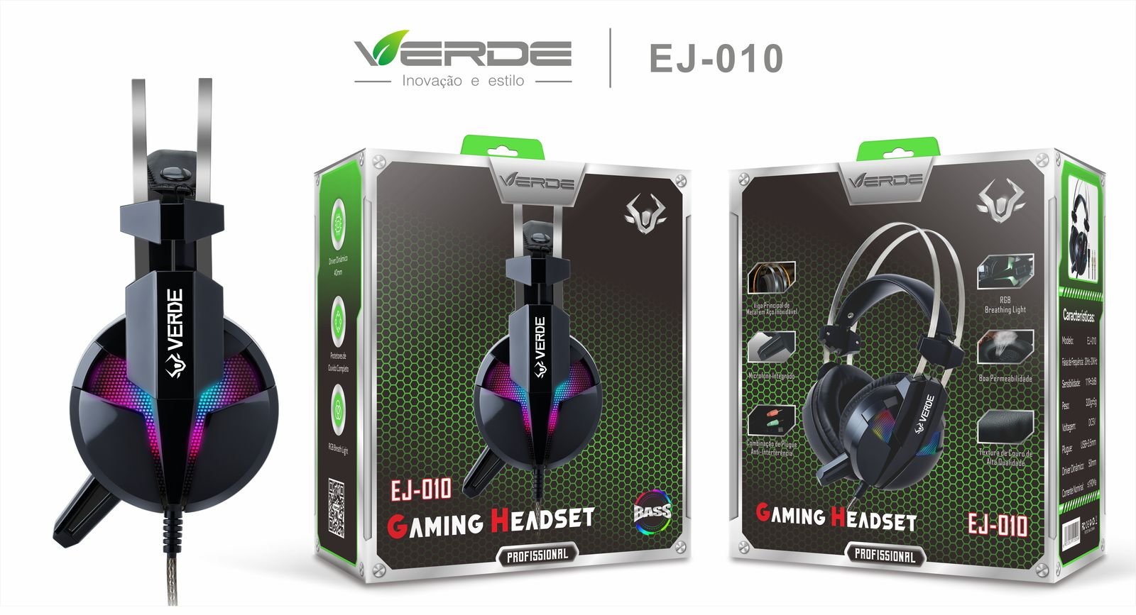 Fone Headset Gamer VERDE EJ-010 Com LED