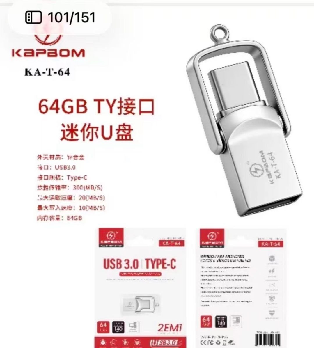 Mini Pen Drive USB 3,0 Tipo C De 64GB Kapbom KA-T-64