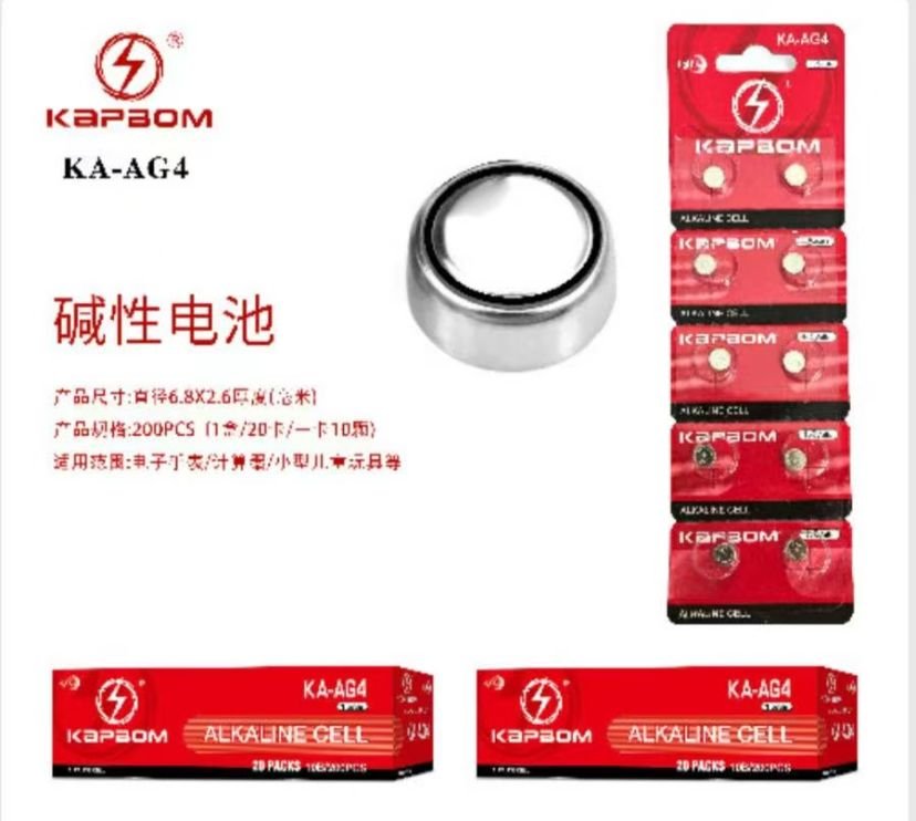 Pilha De Pastilha Alcalina 1,5v Kapbom KA-AG4 Cada Cartela 10 unidades