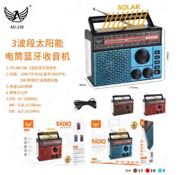 Radio Retro Solar Altomex AD-230 Com Bluetooth x-bass FM/AM
