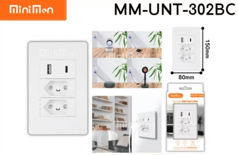 Tomada De Parede Usb Com Tipo C Leon MM-UNT-302BC