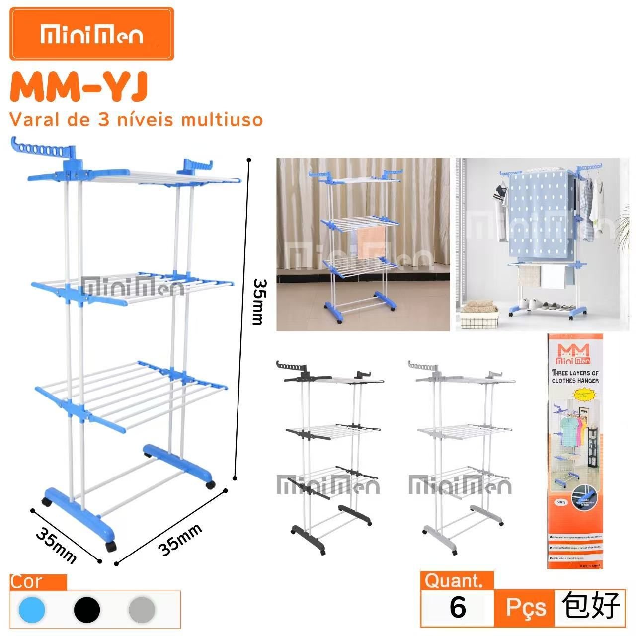 Varal de 3 Niveis Multiuso Leon MM-YJ